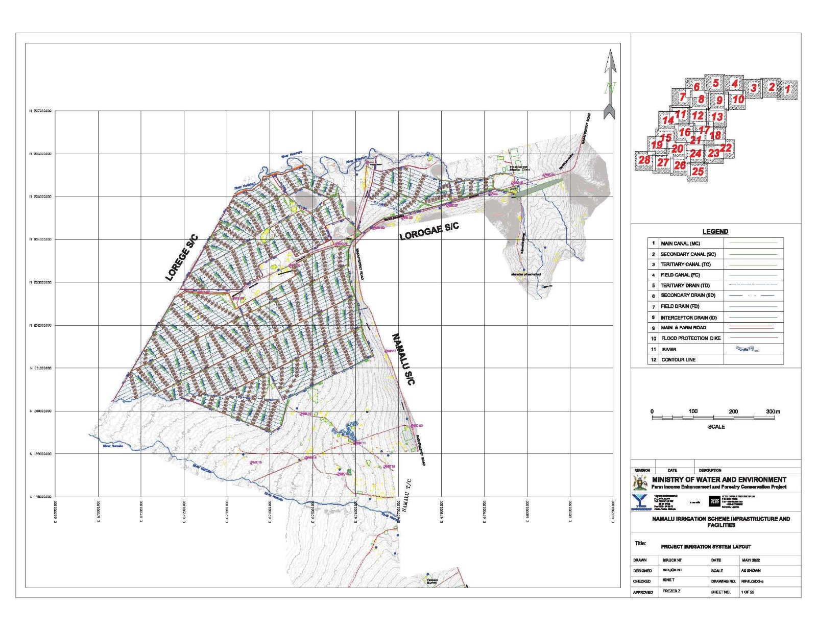 • Main, Secondary, Tertiary Canals & Drains: